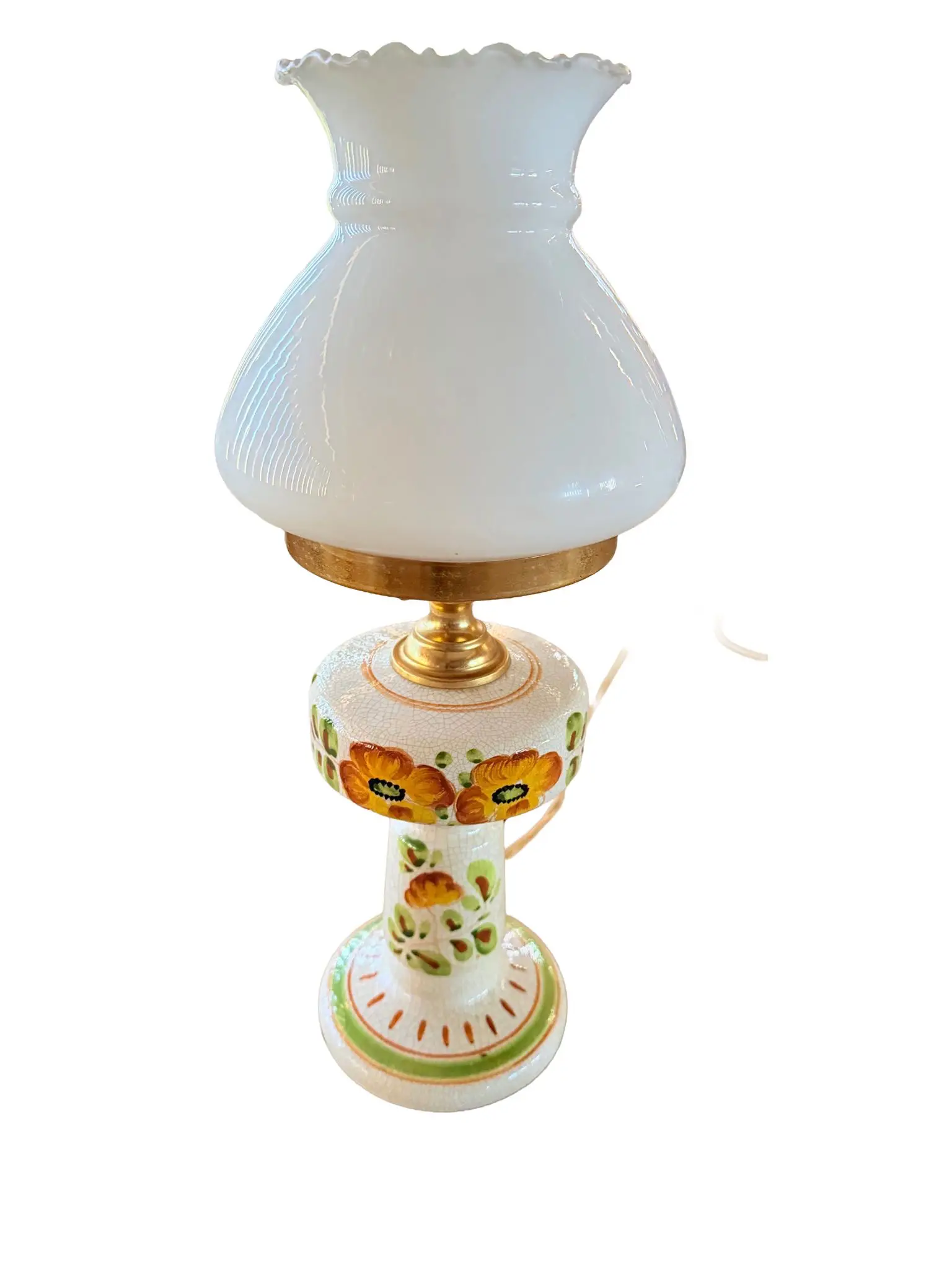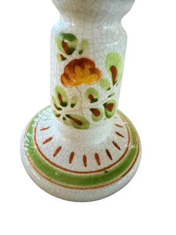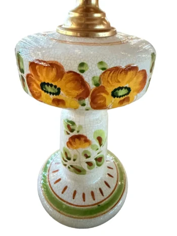 - Ročno poslikan cvetlični vzorec na beli keramiki z medenino in mlečnim steklom