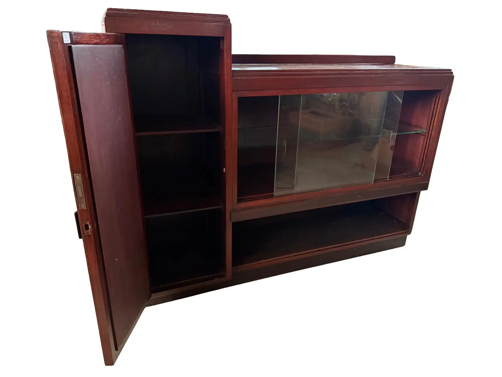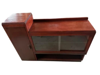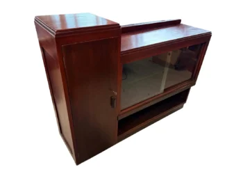 - Zasnova ina značilen dvonadstropni zgornji del in stekleno vitrino z drsnimi vrati